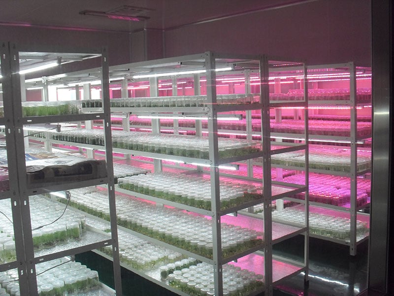 ②生長周期短,繁殖率高。植物組織培養是由於人為控製培養條件,根據不同植物不同部位的不同要求而提供不同的培養條件,因此生長較快。另外,植株也比較小,往往20—30d為一個周期。所以,雖然植物組織培養需要一定設備及能源消耗,但由於植物材料能按幾何級數繁殖生產,故總體來說成本低廉,且能及時提供規格一致的優良種苗或脫病毒種苗。