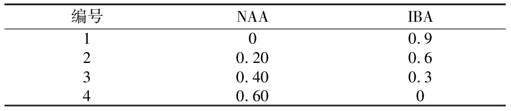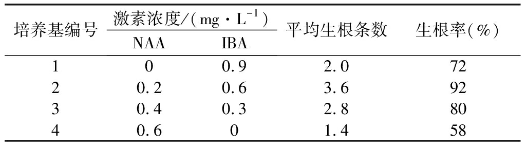 表3 生根培養基不同激素濃度配比表 mg·L-1