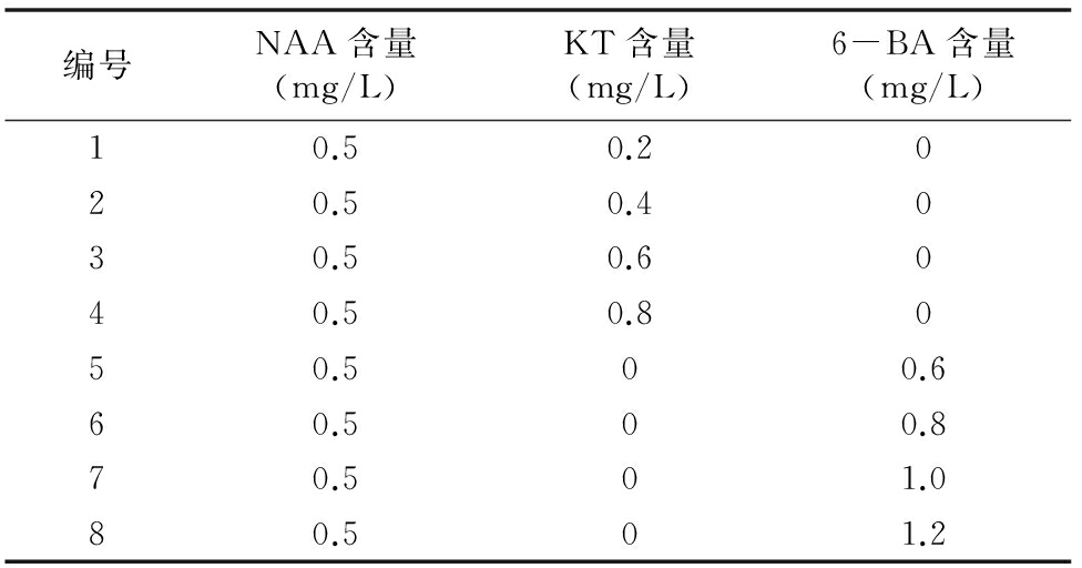 表2 繼代培養基植物激素含量