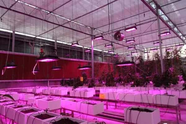 紅藍光的低光效(20lm/w)無法使其在距離植物太遠的地方達到光補償點,200w LED在1米5時能得到56μmol/s/m²,番茄的光補償點是53.1μmol/s/m²,如果掛到3-6米高的溫室頂部將不起任何作用,所以在設計LED溫室時,要使用更大功率的LED或者把懸掛方式設計成高度可調節,這樣就能按照植物生長高度,一直近距離的向植物輸出盡可能高的PPFD。
