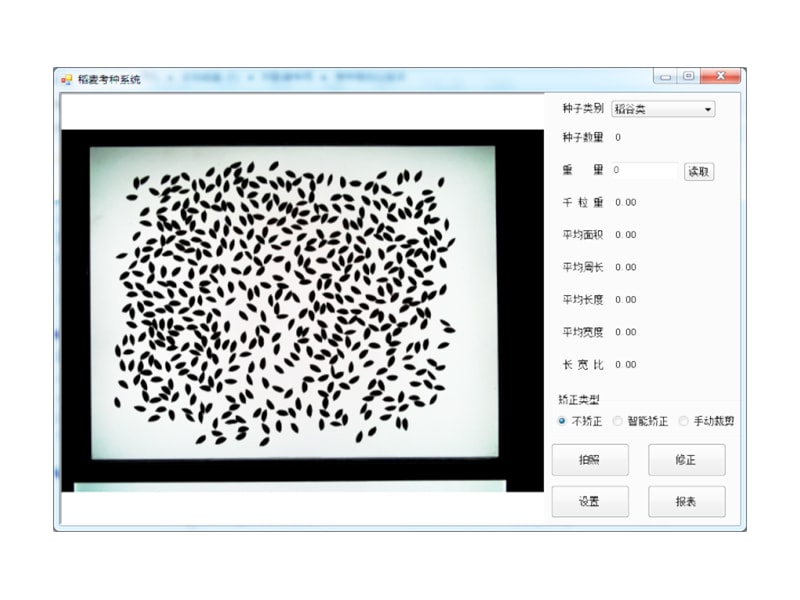 智能考種係統是基於圖像識別技術,一鍵執行,馬上計算出所有測量參數,降低人工操作性,減少人為誤差,簡化操作流程,一鍵得到測量結果。